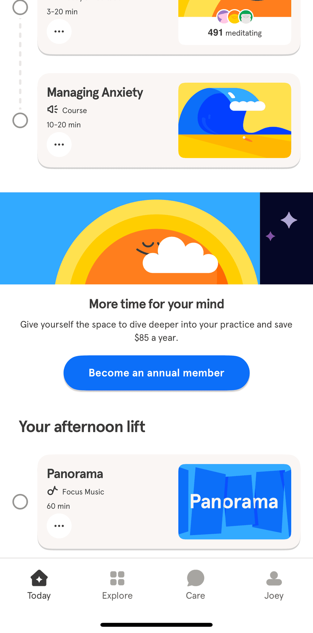 The home screen greets me with a list of meditations and articles each morning. However, I'm unclear about what to do next. Are these items a guide to follow? Do I need to complete all three? The lack of instructions left me confused