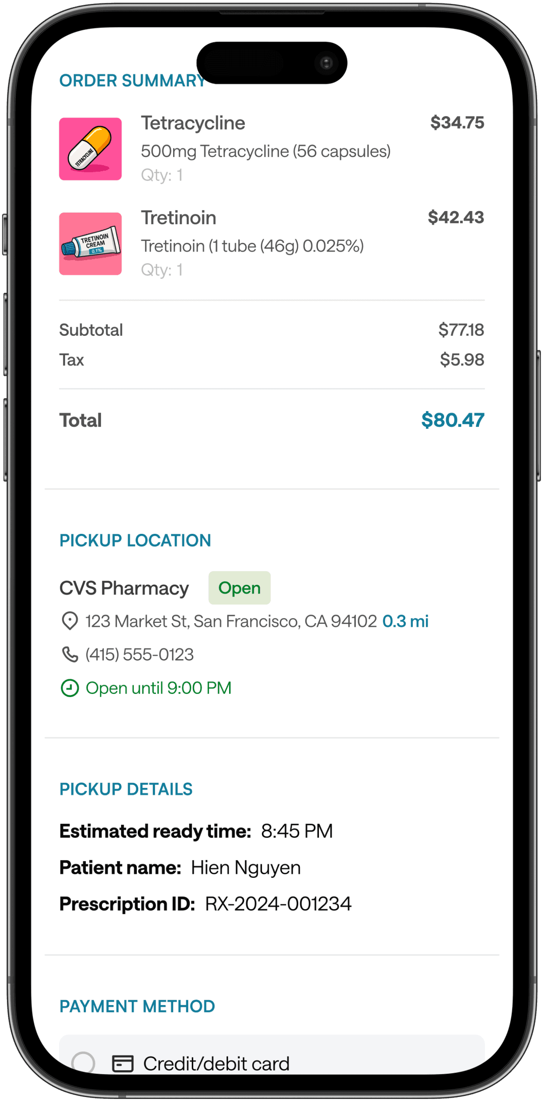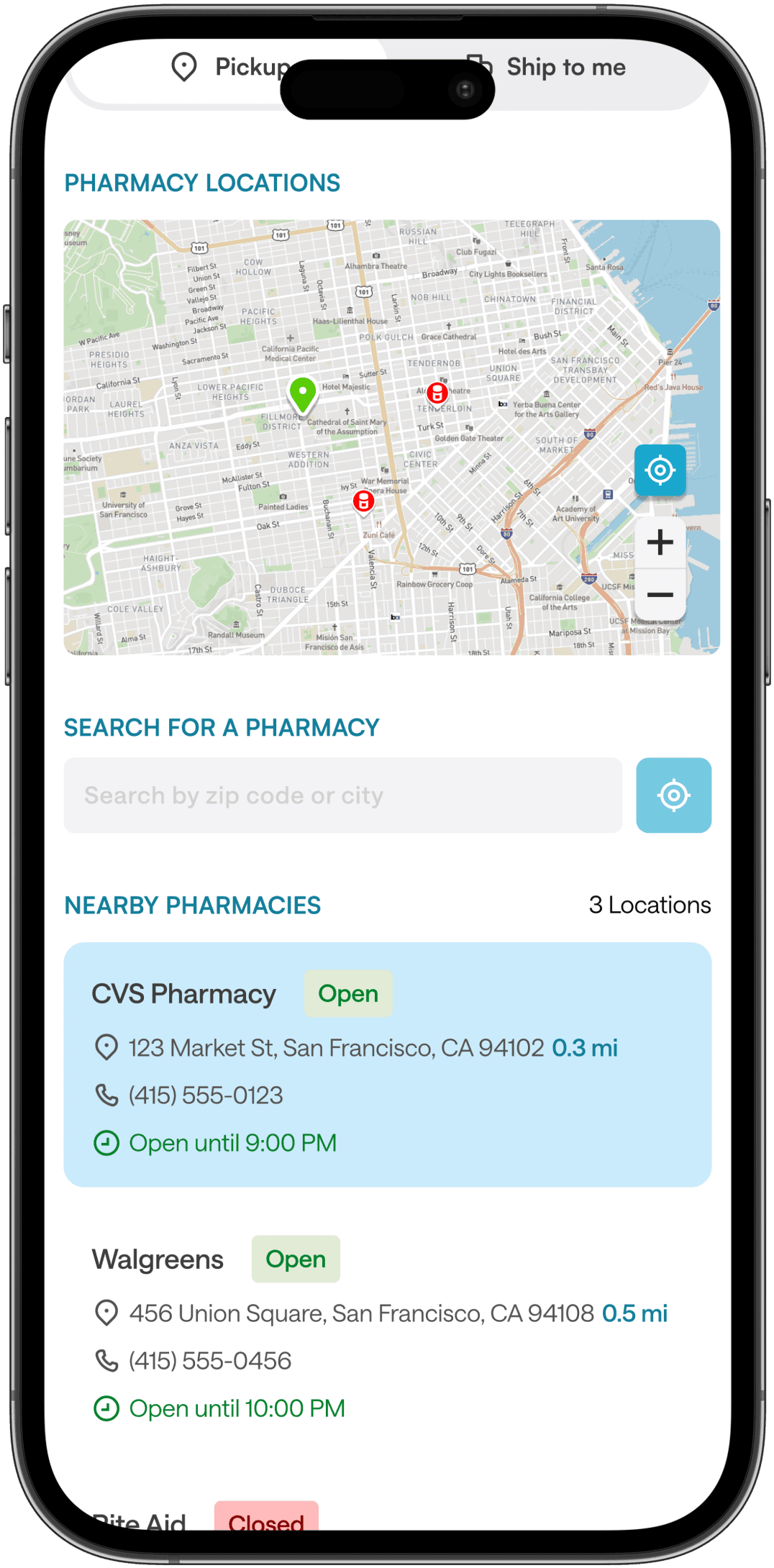 Pickup/shipping details now clearly displayed: patient name, prescription ID, and estimated pickup time (if applicable).