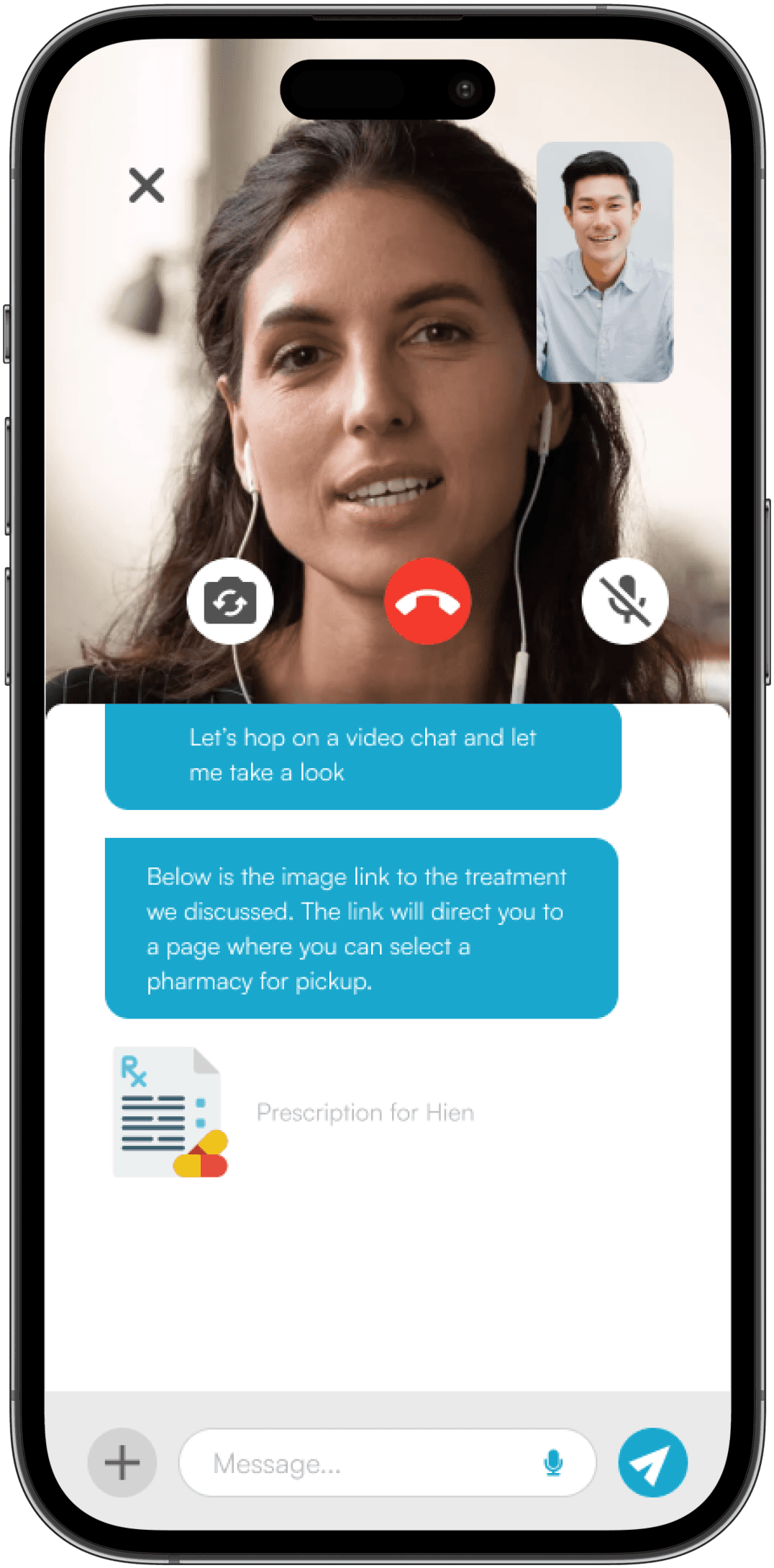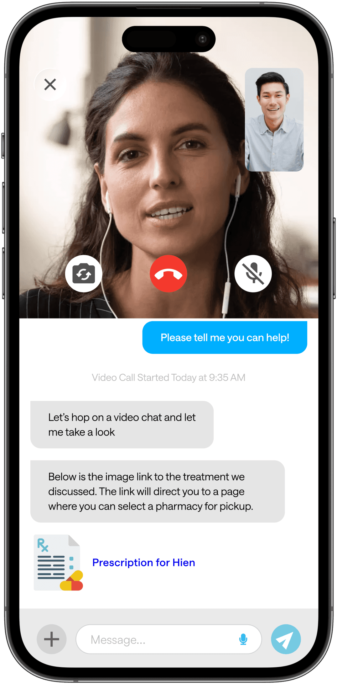 Users could start with chat and switch to video if needed, and doctors could send prescription links that led straight to choosing a pickup location. This made it easier for people to complete their visit from start to finish