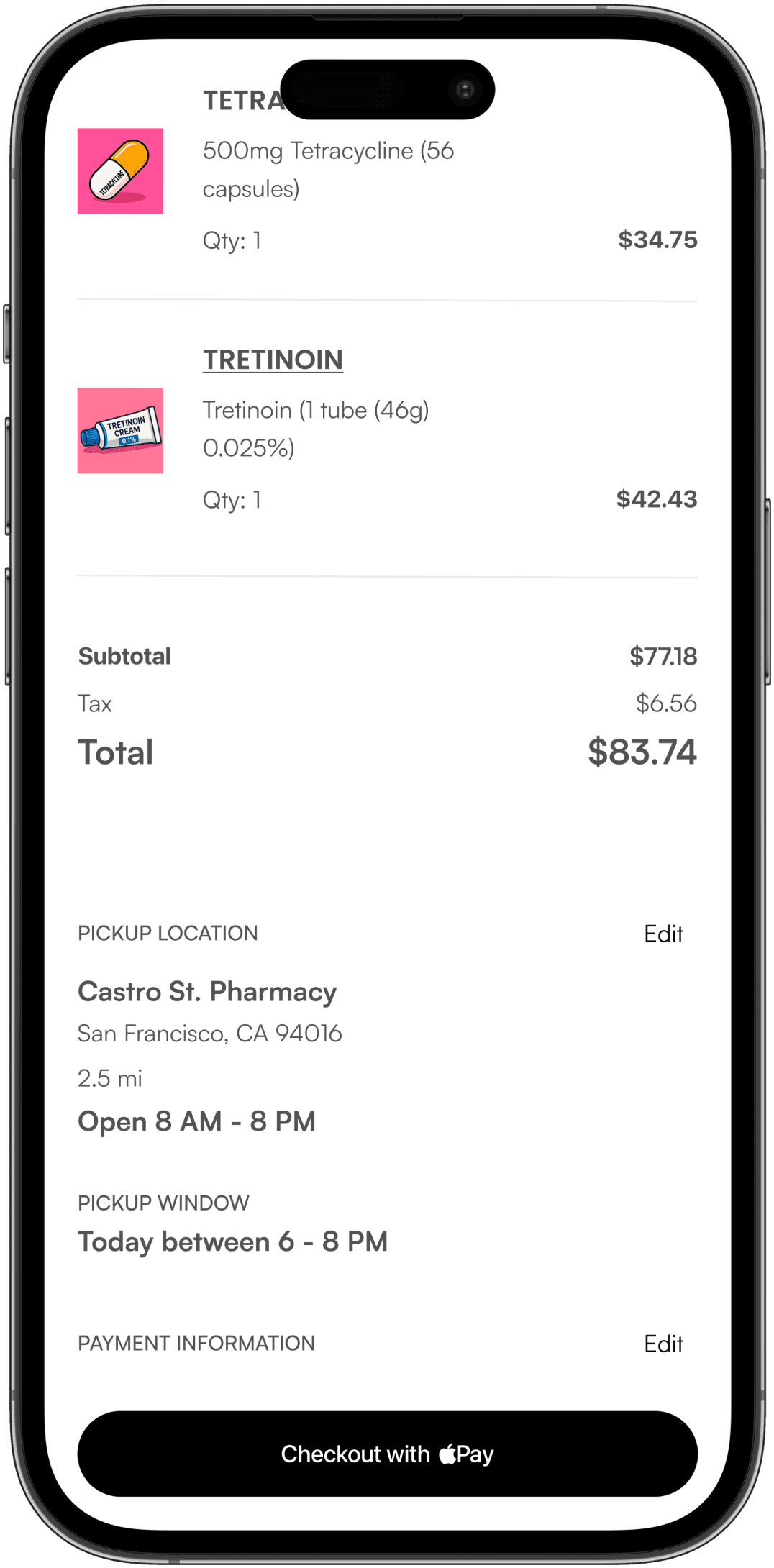 This screen lets users review and confirm all details before finalizing their pharmacy orders